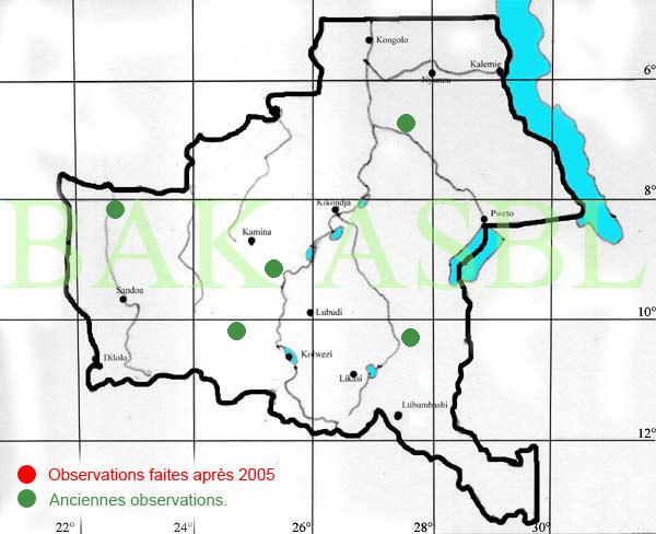 Au Katanga, on peut la rencontrer dans les forêts pluviales de l'Ouest de la province et plus rarement dans les forêts galeries ou les savanes boisées. |